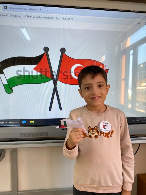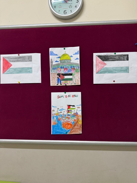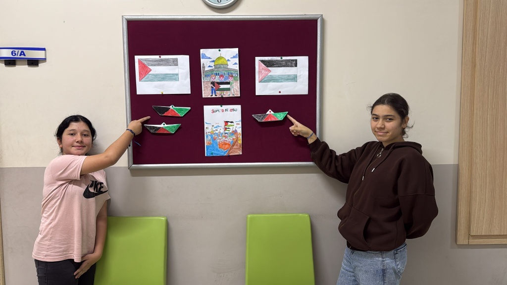 Etkinliklerde öğrenciler, Filistin bayrakları ve barış temalı afişler hazırlayarak, kardeşlik, dayanışma ve insanlık değerlerine vurgu yaptı. Öğretmenlerimizin rehberliğinde yapılan drama, resim ve pano çalışmalarıyla Filistin’de yaşanan dram öğrencilerimizin yüreklerine dokundu.